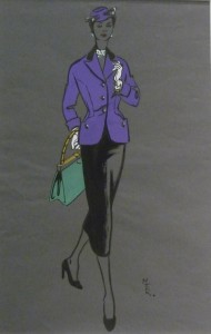 Last week my course visited the Prints and Drawings Study Room at the V&A. This is an amazing resource for all subjects including fashion. We had ordered a selection of original designs – these included 1930s sketches by Norman Hartnell for the Royal family (with corgis!), Mary Quant, Jean Muir and Zandra Rhodes. Many of the sketches have fabric swatches and notes by the designers, you you get a real sense of the creative process. But everyone’s favourite seemed to be the 1949 order book by a little-known designer, Marjorie Field – very evocative of its period!http://www.vam.ac.uk/resources/print_study_reading/index.html