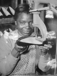 I’ve been working on this exhibition for the last six months, uncovering fascinating documents in The Women’s Library and the TUC archives. Some are unbelievably sad, like the records of the young women poisoned by working with toxic materials. Some are very funny, like theĀ satirical versesĀ in the 1929 textile strikers’ songbook. Some are just amazing glimpses of a world of work that most of us will never know – like the portraits of workers in the Co-Operative Wholesale Society’s shoe factory, taken in 1957. Where are these young women now, I wonder?