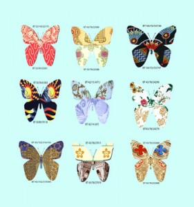 The National Archives hold an incredible wealth of textual documents that are used by historians, and it’s common to find academics poring over medieval court rolls or World War I government records. What is less well known is their visual documents, especially the designs for patents registered after 1842. These cover all imaginable products, from pins to steel smelters and from ribbons to horse blankets. Where possible, samples of the products were preserved along with the patent registration, and bound into bulging leather-clad volumes weighing up to 10kg. The archive is trying to encourage designers to use this resource, and has posted some reinterpretations of historic designs on its website. The butterflies below are labelled with the reference numbers of the original designs – BT standing for Board of Trade.
