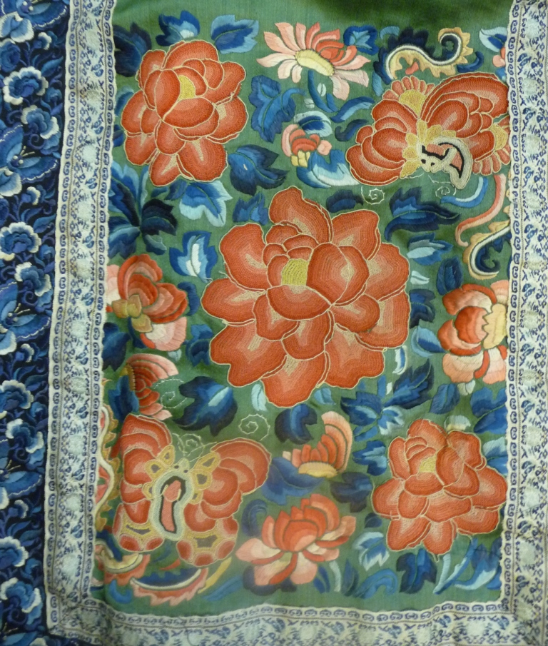 Detail of a chinese skirt turned into a 1920s evening cloak from the family of Pamela Homer Norman